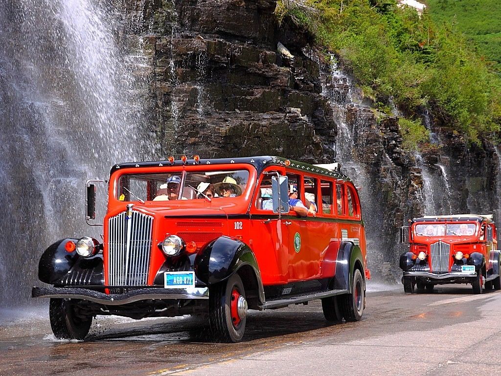 - Zorg dat je scherp bent op de Going-to-the-sun road, de weg is supersmal en je deelt hem met auto’s, campers en fietsers. Geen zin om te rijden? Maak dan gebruik van de vele vintage rode bussen met open dak die overal door het park rijden.